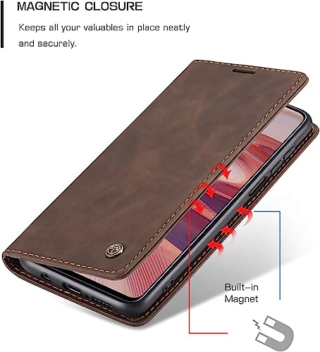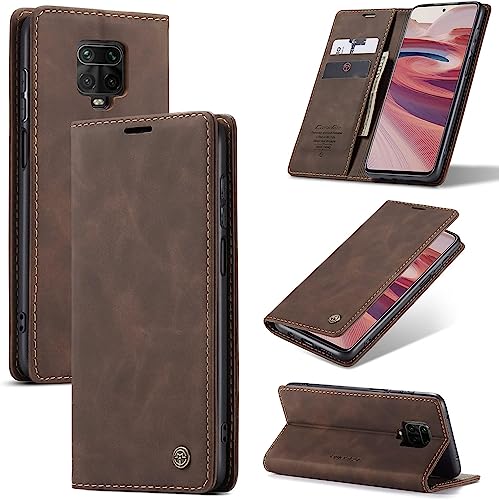 Year - جراب حماية قابل للطي من جلد البولي يوريثين الفاخر مع فتحة بطاقة مغناطيسية وحامل عملي متوافق ريدمي نوت 9s وريدمي 9 برو كافيه بني لشاومي 9S 9S