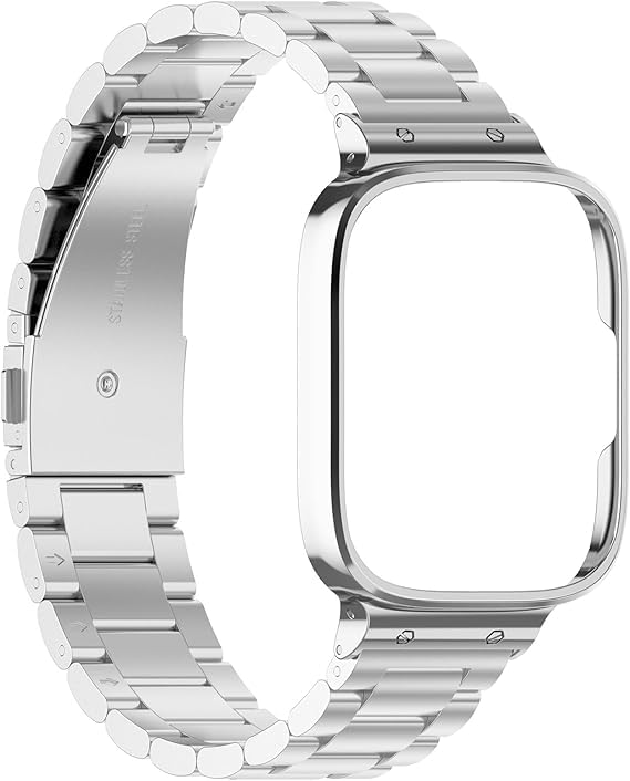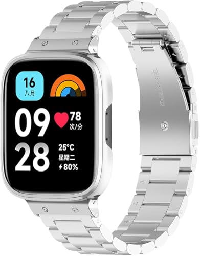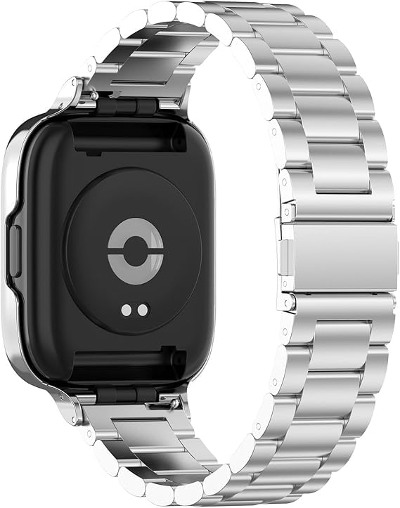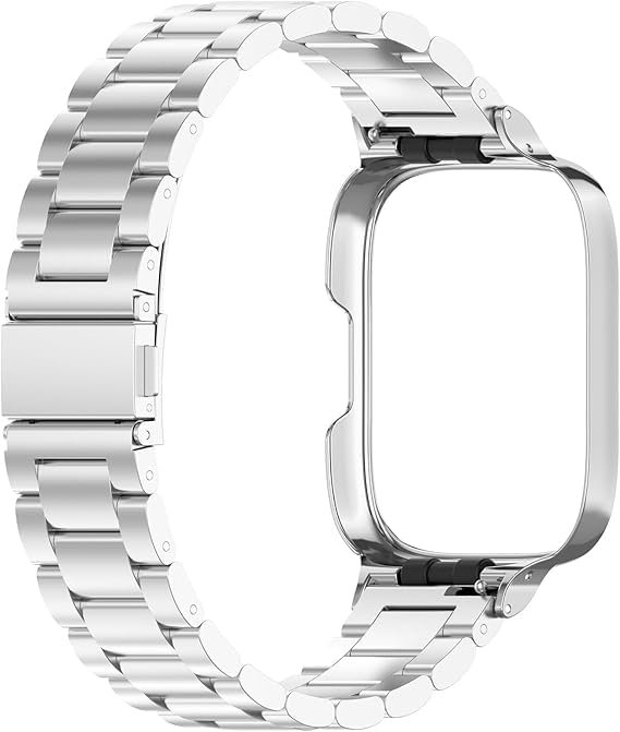 ELMO3EZZ - سوار للساعات الذكية متوافق مع ساعة ريدمي ووتش 3 اكتيف/ووتش 3 لايت، معدني من الفولاذ مقاوم للصدأ مع علبة، قابل للتعديل للنساء والرجال