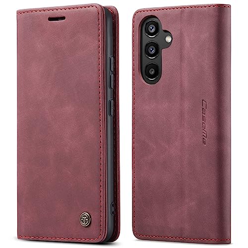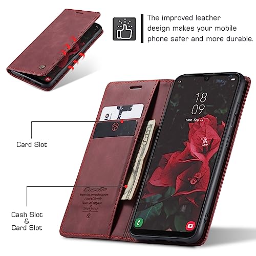 Generic - جراب جلد قابل للطي أفقي متعدد الوظائف لموبايل سامسونج جالاكسي A24 الترا شبكة الجيل الخامس A24 مع فتحة للبطاقات وحامل ومحفظة لسامسونج ِ24 أحمر نبيذي منقلب