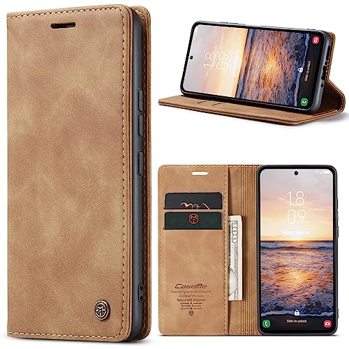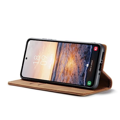 Generic - جراب حماية جلد قابل للطي أفقي متعدد الوظائف متوافق مع سامسونج جالاكسي A54 الجيل الخامس 5G فتحة للبطاقات وحامل ومحفظة لسامسونج A54 بني