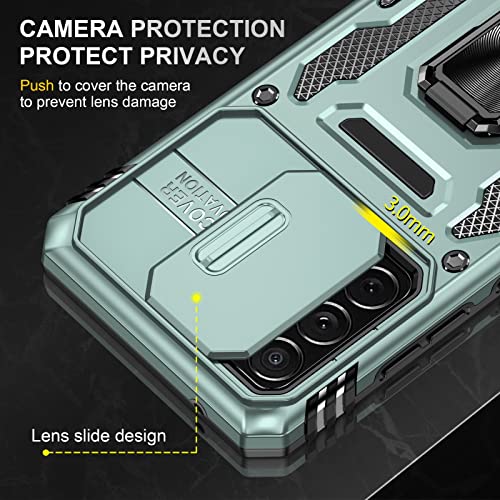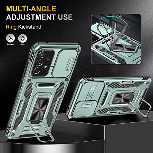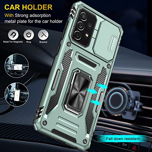 Generic - جراب حماية متين وقوي من الدرجة العسكرية مضاد للصدمات مع مسند حلقي متوافق مع موبايل سامسونج جالاكسي A72 شبكة الجيل الرابع 4G مع درع منزلق للكاميرا - اخضر البين، مطاط