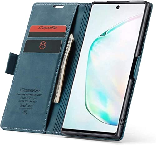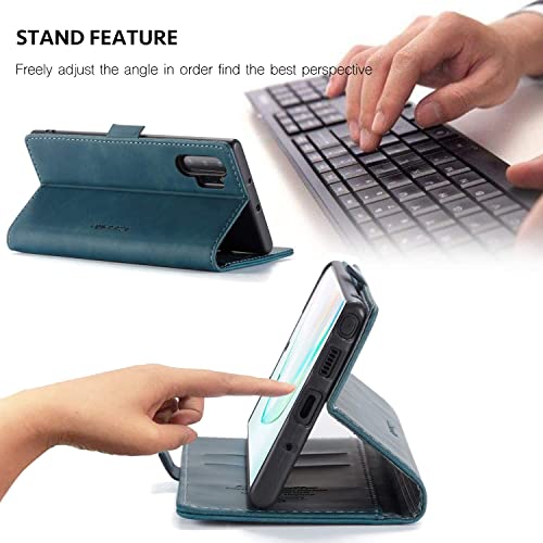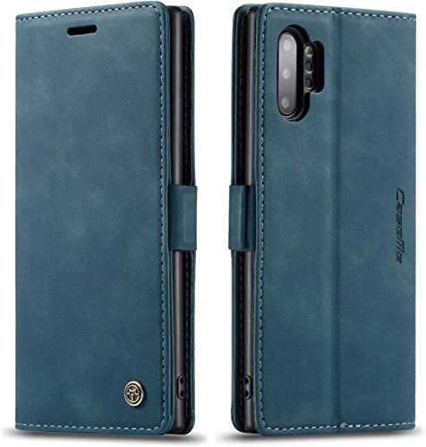 Generic - جراب حماية جلد صناعي فاخر لموبايل سامسونج جالاكسي نوت 10 بلس بتصميم قابل للطي مع فتحة بطاقة مغناطيسية وحامل عملي (ازرق)