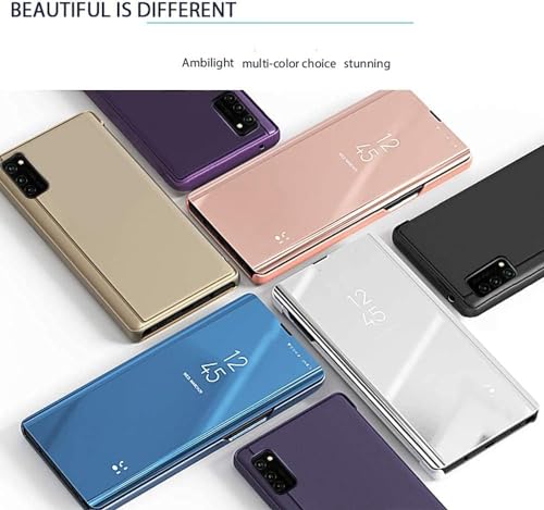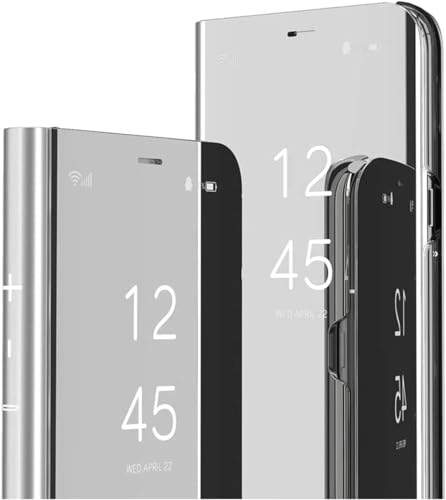 ELMO3EZZ - جراب حماية من لموبايل سامسونج جالاكسي S21 FE بتصميم عاكس قابل للطي ونمط رفيع مضاد للصدمات بزاوية 360 درجة لموبايل سامسونج جالاكسي S21 FE 5G 2021 من المعز، فضي عاكس، سيليكون