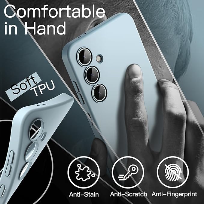 ELMO3EZZ - جراب حماية رفيع مضاد للخدش والصدمات مع بطانة من المايكروفايبر متوافق مع موبايل سامسونج جالاكسي S24 FE مقاس 6.7 بوصة (لون أزرق فاتح)