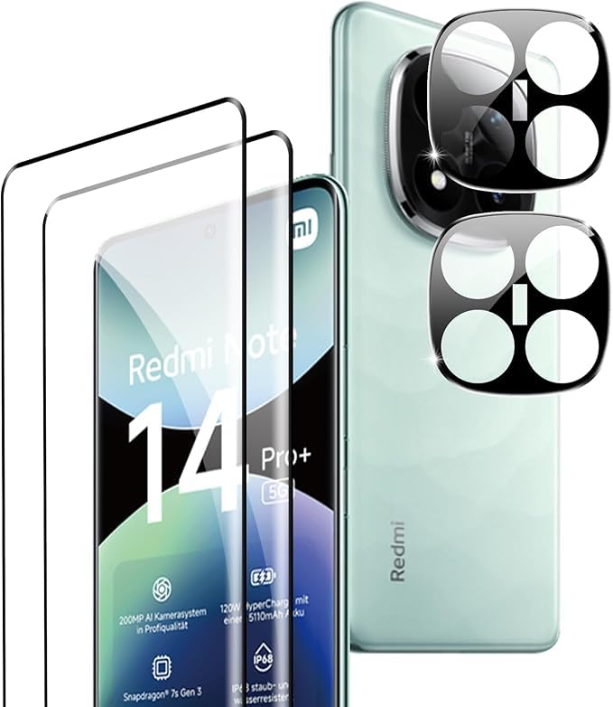 Generic - غشاء واقي من الزجاج المقسى متوافق مع موبايل شاومي ريدمي نوت 14 برو بلس 5G، قطعتين من الزجاج المقسى + 2 كاميرا خلفية، مضاد للخدش، صلابة 9H