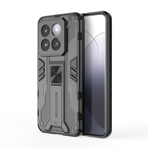 Generic - جراب حماية مضاد للصدمات مع حامل بتصميم 2 وحماية للكاميرا لموبايل شاومي 14 برو (اسود)، بلاستيك