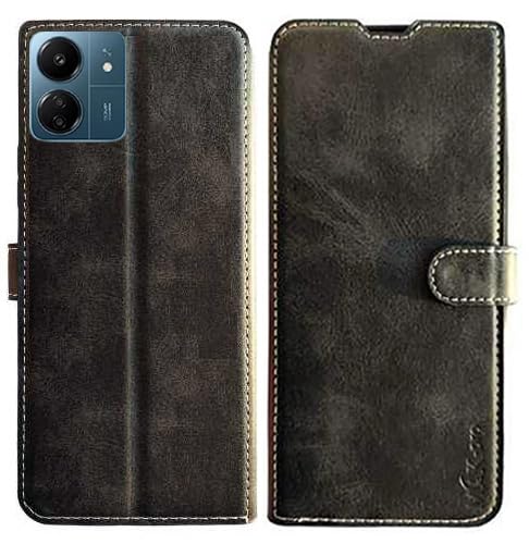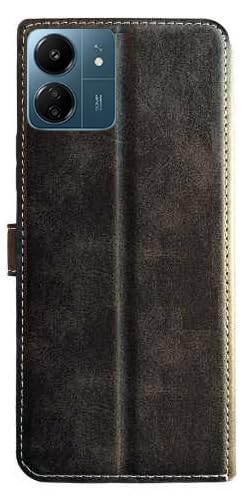 Generic - متوافق مع هاتف شاومي ريدمي 13C جراب حماية وش و ضهر من الجلد قابل للطي مضاد للصدمات بتصميم مميز جديد بخامة عالية الجودة (مخيطه) و بكبسوله ممغنطه من M7molge - اسود