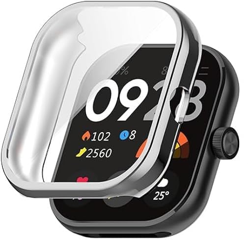 Generic - جراب حماية شامل متوافق مع ساعة شاومي ريدمي ووتش 4 مع شاشة حماية مدمجة، جراب حماية رفيع من البولي يوريثين المقاوم للحرارة الناعم المقاوم للصدمات (لون فضي)