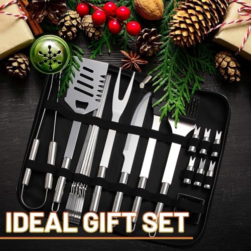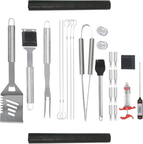 Generic - مجموعة ادوات شواء كاملة من الستانلس ستيل مكونة من 24 قطعة مع شنطة حمل، مجموعة ملحقات شواء كاملة للحديقة والشرفة والرحلات الخارجية، سهلة التنظيم والاستخدام