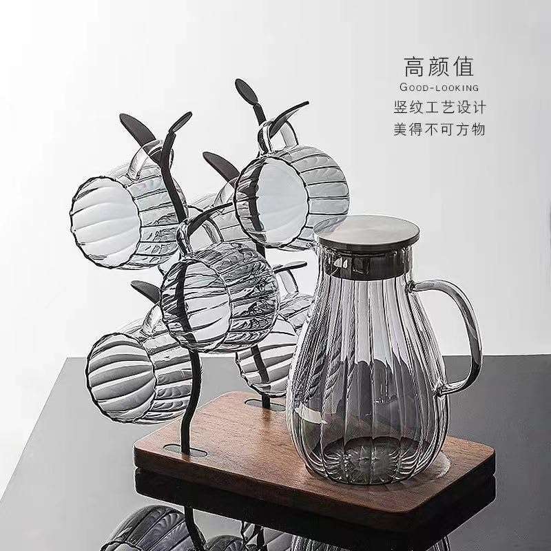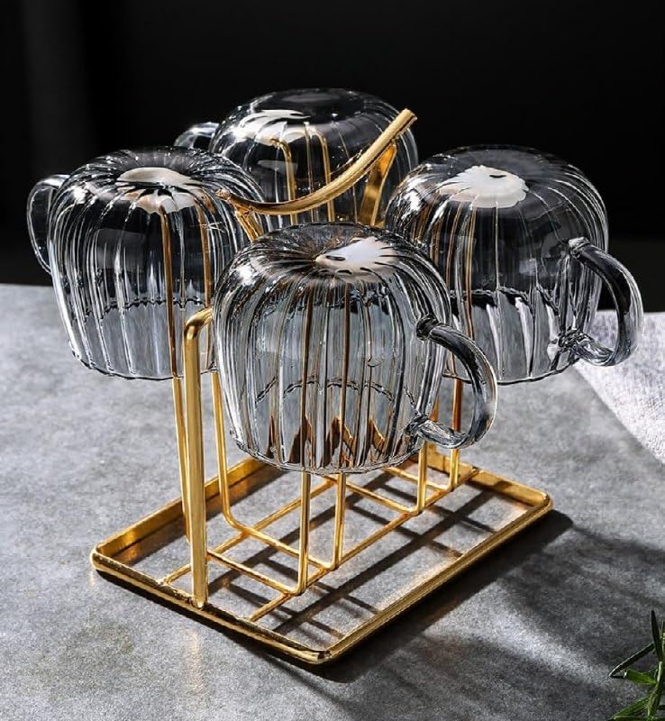 - تصميم فاخر: طقم زجاجي أنيق يتكون من براد و٤ أكواب بتصميم كلاسيكي مميز مع قاعدة ذهبية