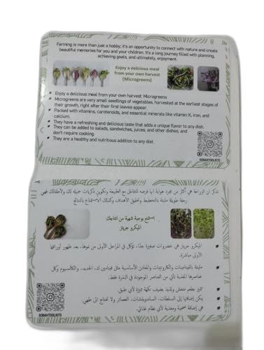 - التربة الزراعية: تتضمن كبسولة تربة مضغوطة من ألياف جوز الهند تتوسع عند ترطيبها، مما يوفر وسطًا مناسبًا لنمو الخضروات المصغرة.