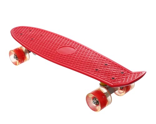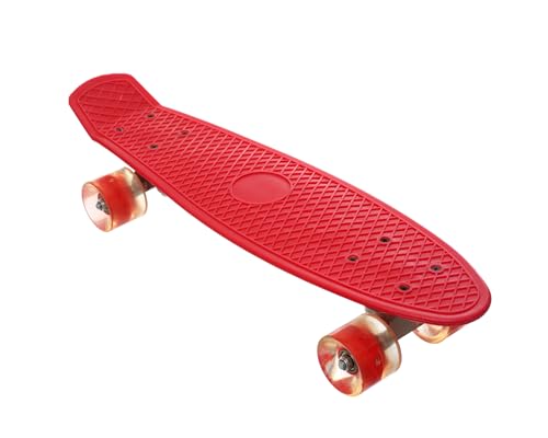Generic. - لوح تزلج كامل بعجلات مضيئة LED ملونة للمبتدئين، مقاس 57 سم، لون أحمر