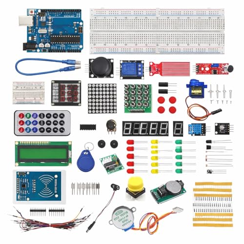 Generic - مجموعة شاملة للمبتدئين مع لوحة تحكم دقيقة ومستشعرات ولوحة توصيل - متوافقة مع اردوينو اي دي اي | مجموعة الكترونيات متكاملة مع لوحة تحكم دقيقة وحساسات وبريدبورد متوافقة مع اردوينو اي دي اي