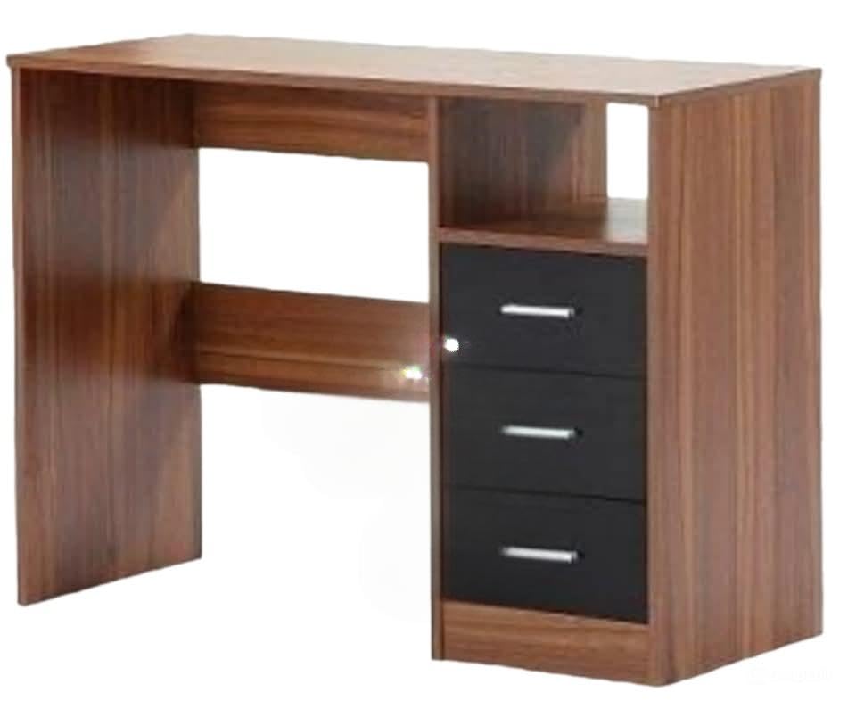 Generic - مكتب كمبيوتر بثلاث أدراج، لون خشبي بني مع أسود، مع رف تخزين، أثاث مكتبي