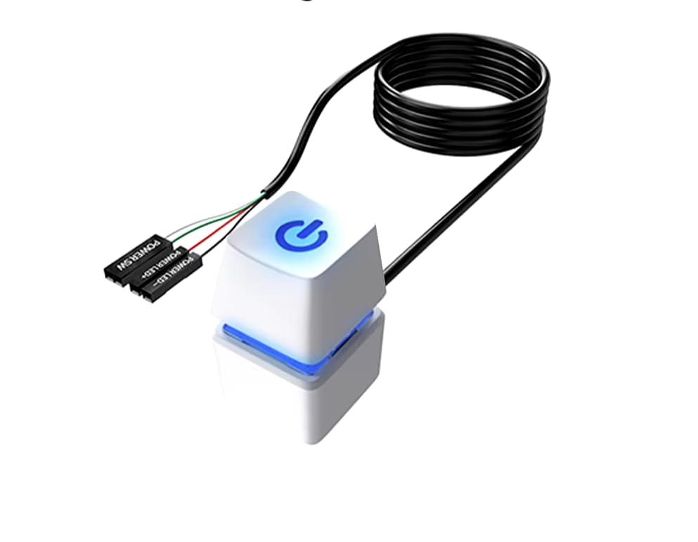 Generic - مفتاح كمبيوتر مكتبي بطول 1.8 متر باضاءة LED للوحة الام للكمبيوتر والابداع كيبل تمديد لزر التشغيل والايقاف للمنزل والمكتب والكمبيوتر - زر ابيض