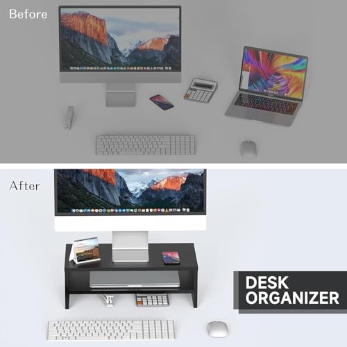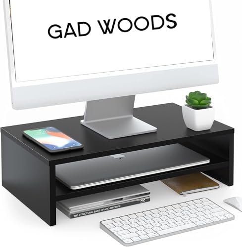 Generic - حامل شاشة كمبيوتر من MDF – منظم مكتب مع رف تخزين للابتوب والكتب – تصميم أنيق – ارتفاع مثالي لتقليل آلام الرقبة – مقاس 40×24×15 سم – من Gad Woods