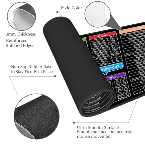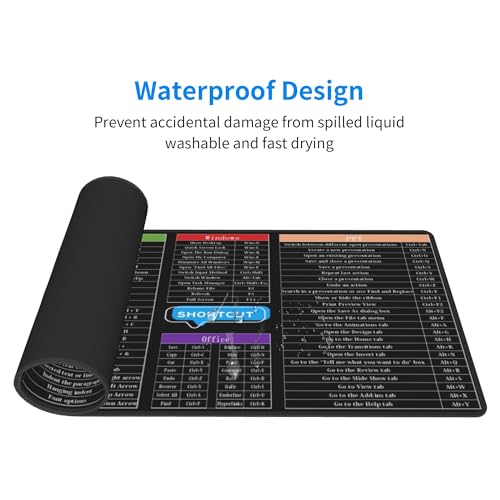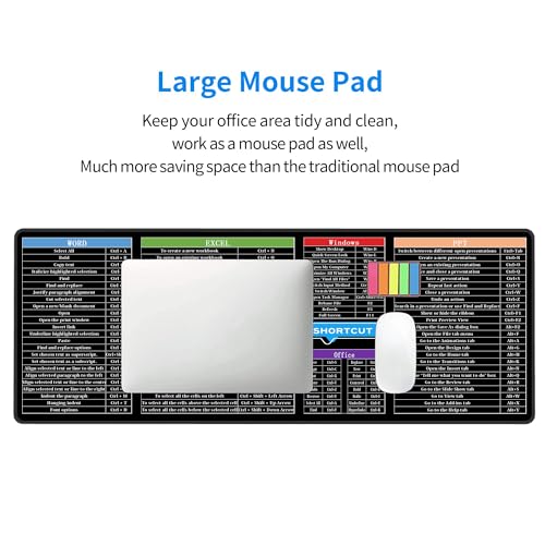 Sigouyinei - لوحة ماوس ولوحة المفاتيح للألعاب بحجم كبير جدًا XL بحواف مخيطة وقاعدة مطاط للمكتب المنزلي بتصميم اختصارات لبرامج اوفيس باور بوينت واكسيل وورد، 80 × 30 سم