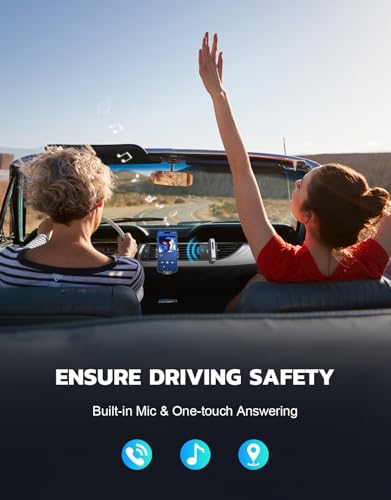 - 【مكالمات وتنقل بدون استخدام اليدين】ميكروفون مدمج وزر واحد "MFB" للرد / إعادة الاتصال / إنهاء المكالمات، يساعدك على إجراء مكالمات بدون استخدام اليدين. ويدعم محول الصوت بتقنية البلوتوث بث الإشعارات الصوتية من تطبيق الملاحة الموجود. لست مضطرًا للنظر إلى أسفل الهاتف أثناء التنقل. تأكد من القيادة بأمان!