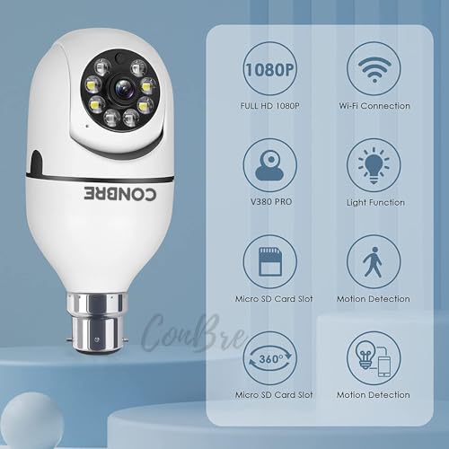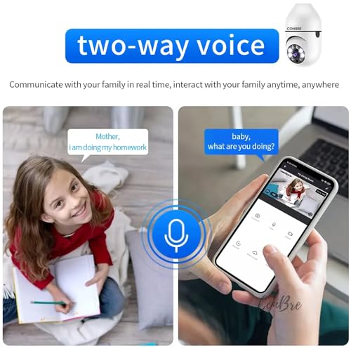 Conbre - كاميرا مراقبة لاسلكية 2 ميجابكسل فل اتش دي من كونبري بتقنية واي فاي سي تي في | تتبع الحركة | تحدث ثنائي الاتجاه | رؤية ليلية ملونة | تدعم بطاقة SD حتى 128GB | تتضمن حامل هندي أبيض