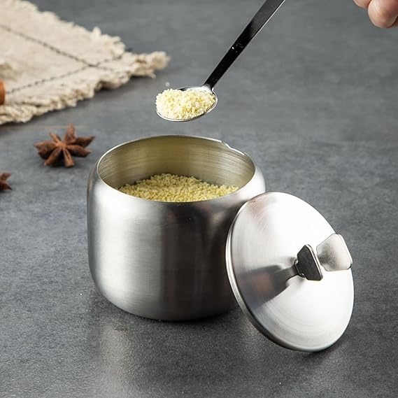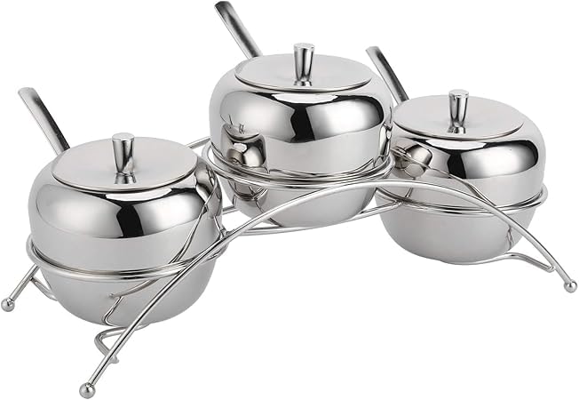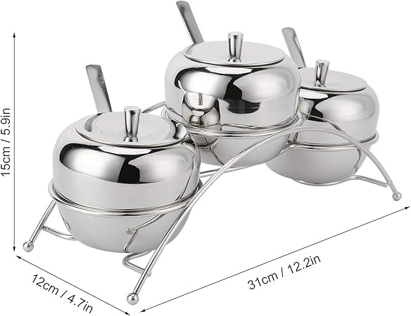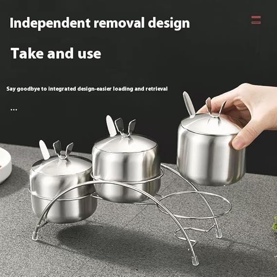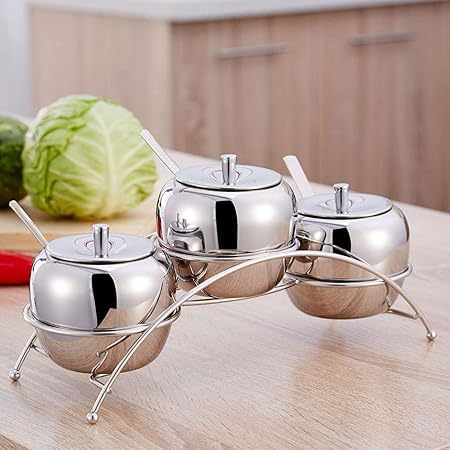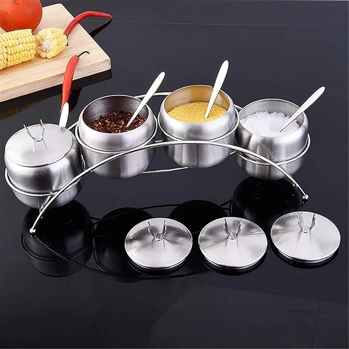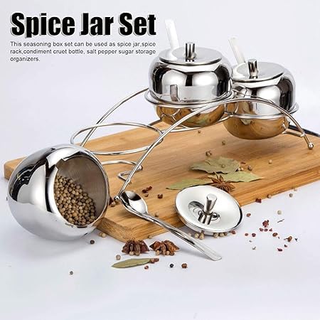 Generic - برطمان توابل من الفولاذ المقاوم للصدأ 304 مع رف تخزين منحني وغطاء وملعقة للمطبخ المنزلي