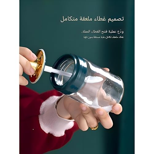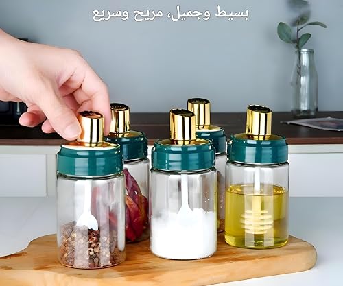 Generic - مجموعة توابل - مجموعة برطمانات زجاجية فاخرة سعة 250 مل مع ملاعق مدمجة واغطية معدنية ذهبية متينة لسهولة التعبئة والتنظيف وتخزين المؤن بدون غبار