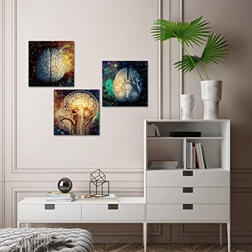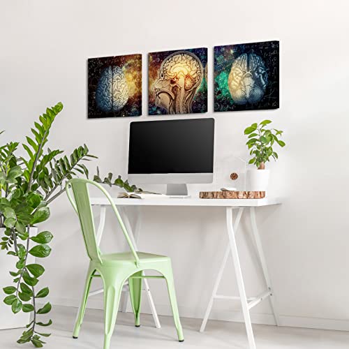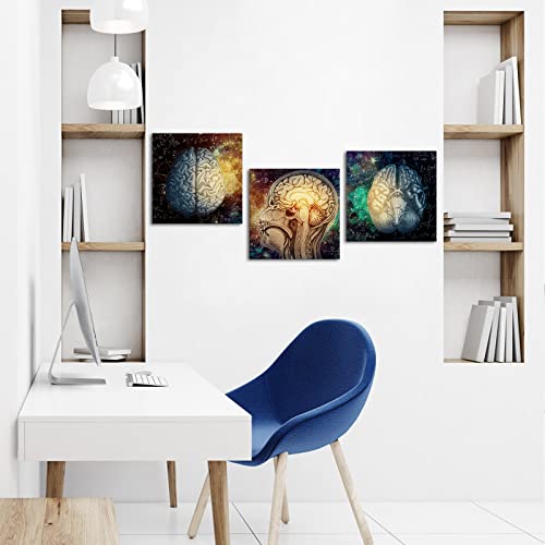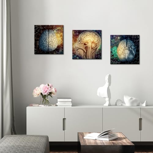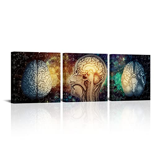 Conipit - لوحة فنية جدارية من القماش كونيبيت برين لليسار واليمين للدماغ، للإلهام وتحفيز وظائف الدماغ، عمل فني تعليمي للفصول الدراسية وغرفة الدراسة والمكتب باطار 12 انش × 3 قطع، متعدد .