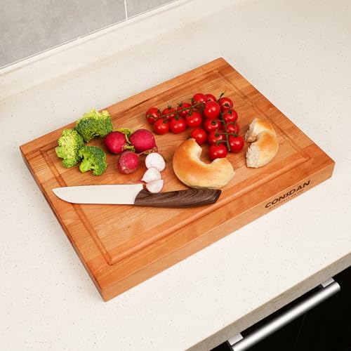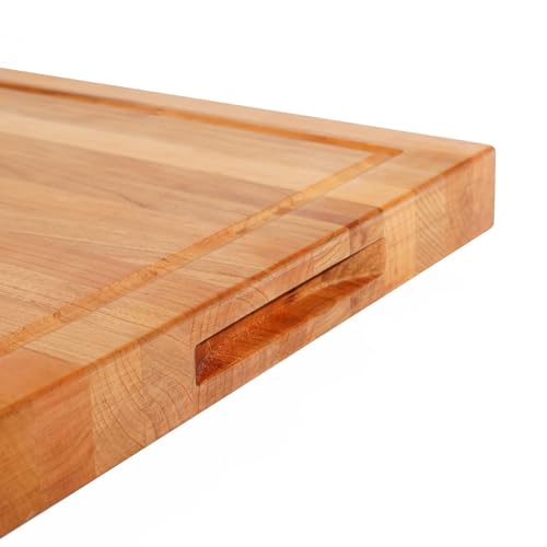 CONSDAN - لوح تقطيع للمطبخ من خشب صلب مزروع في الولايات المتحدة الأمريكية، خشب كرز صلب بمقبض داخلي مخفي، مدهون مسبقا بزيت آمن للأطعمة، مناسب لأسطح المطبخ بنمط حواف طولية من كونسدان، بسُمك 3.8 سم، مقاس 50×38 سم
