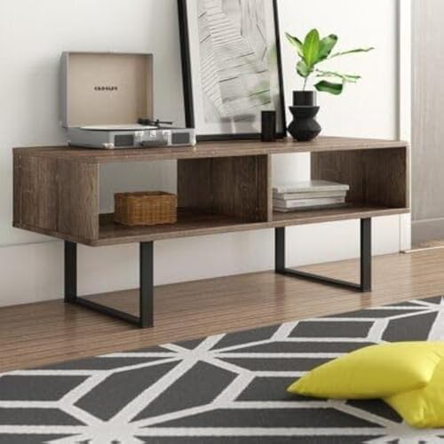 Homz - طاولة جهاز تشغيل ألعاب الفيديو الرقمية بهيكل خشب وقاعدة معدن، لون بني، مقاس 1.20 متر