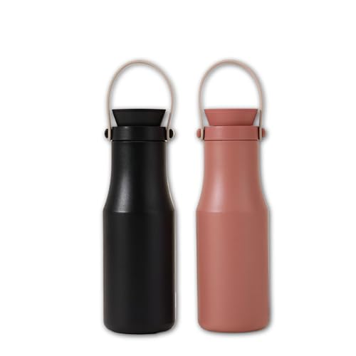 Generic - حاوية - زجاجة فاخرة معزولة بتفريغ الهواء من الستانلس ستيل مع غطاء مفتوح ثنائي الاتجاه وحزام يد، تحافظ على حرارة المشروبات او البرودة لمدة 8 ساعات، تصميم صغير الحجم 470 مل متعدد الالوان (قطعة 2)