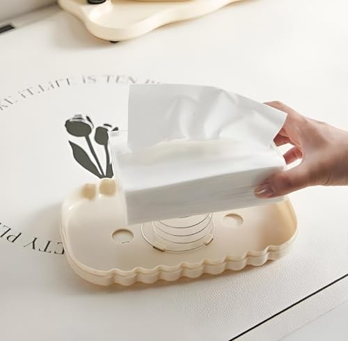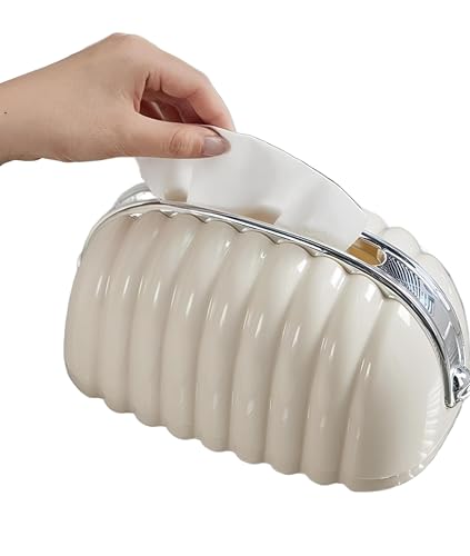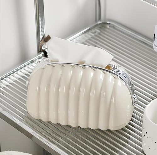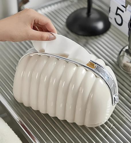 Generic - علبة مناديل عصرية على شكل شنطة، حامل عملي مزود بنظام نبض داخلي وقاعدة مفتوحة من الأسفل لتوفير مساحة تخزين أكبر وسحب سلس، كريمي