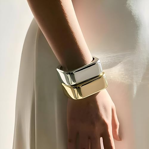 Generic - تصميم عصري عريض - سوار عريض يتميز بنمط هندسي وفضي جميل مع لمسة نهائية ذهبية.