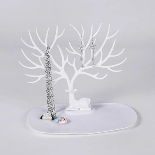 Generic - حوامل المجوهرات المعاصرة - مجوهرات شجرة قرن الوعل منظمات أنيقة مع قرون الغزلان للأقراط والقلائد والأساور وأحمر الشفاه والساعات والمفاتيح بلاستيك أبيض