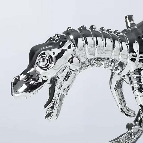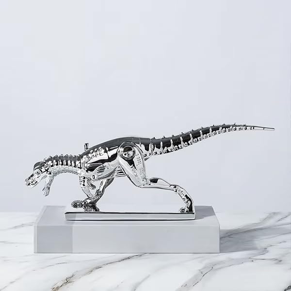 Generic - تمثال هيكل عظمي عصري على شكل ديناصور تي-ريكس، لمسة نهائية معدنية فضية من الكروم، تمثال ديكور عصري