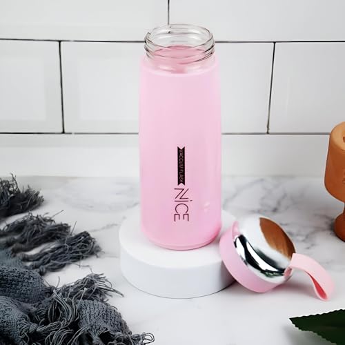 Generic - قارورة مياه معاصرة سعة 400 مل قلب زجاجي مع غلاف قوي من السيليكون | منع التسرب | خالية مادة BPA | الأفضل للمؤسسات الأكاديمية: الاستخدام في المدارس والكليات وردى