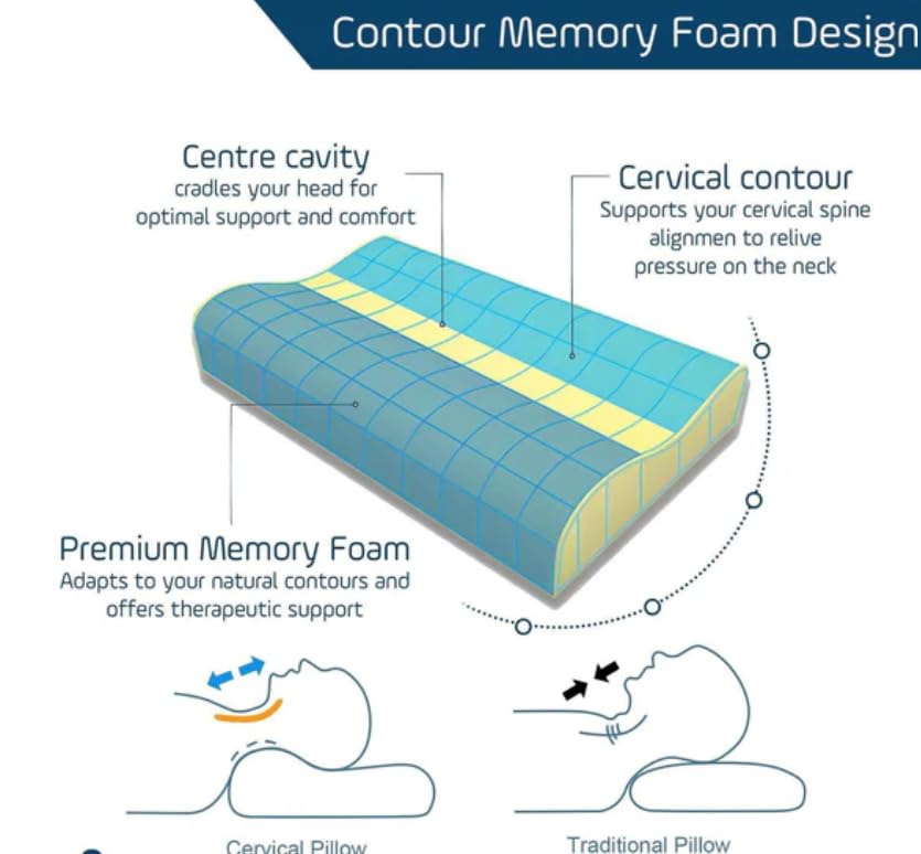 - الدعم العلاجي: تصميم منحني يساعد على تقليل شد الرقبة والكتف، مما قد يخفف من التصلب الصباحي وعدم الراحة.