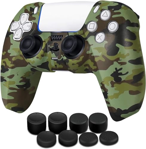 Generic - جراب ذراع تحكم لجهاز بلاي ستيشن 5 من السيليكون مع غطاء دوال سينس + 8 مقابض ابهام برو اكسسوارات حماية سوني اخضر مموه مع...
