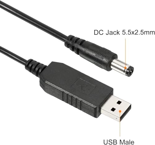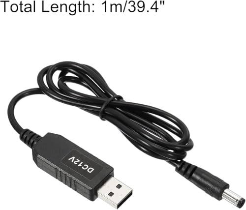 - اللون: أسود، المادة: بلاستيك بي في سي PVC، نحاس؛ الطول الإجمالي: 1 متر؛ قطر السلك: 3.5 ملم؛ الوصلات: مقبس USB A ذكر إلى تيار مستمر 5.5 × 2.1 ملم؛ الطاقة: 6 وات، جهد الدخل: تيار مستمر 5 فولت، جهد الخرج: تيار مستمر 12 فولت؛ الحد الأقصى لتيار الخرج: 1 امبير