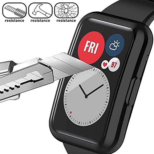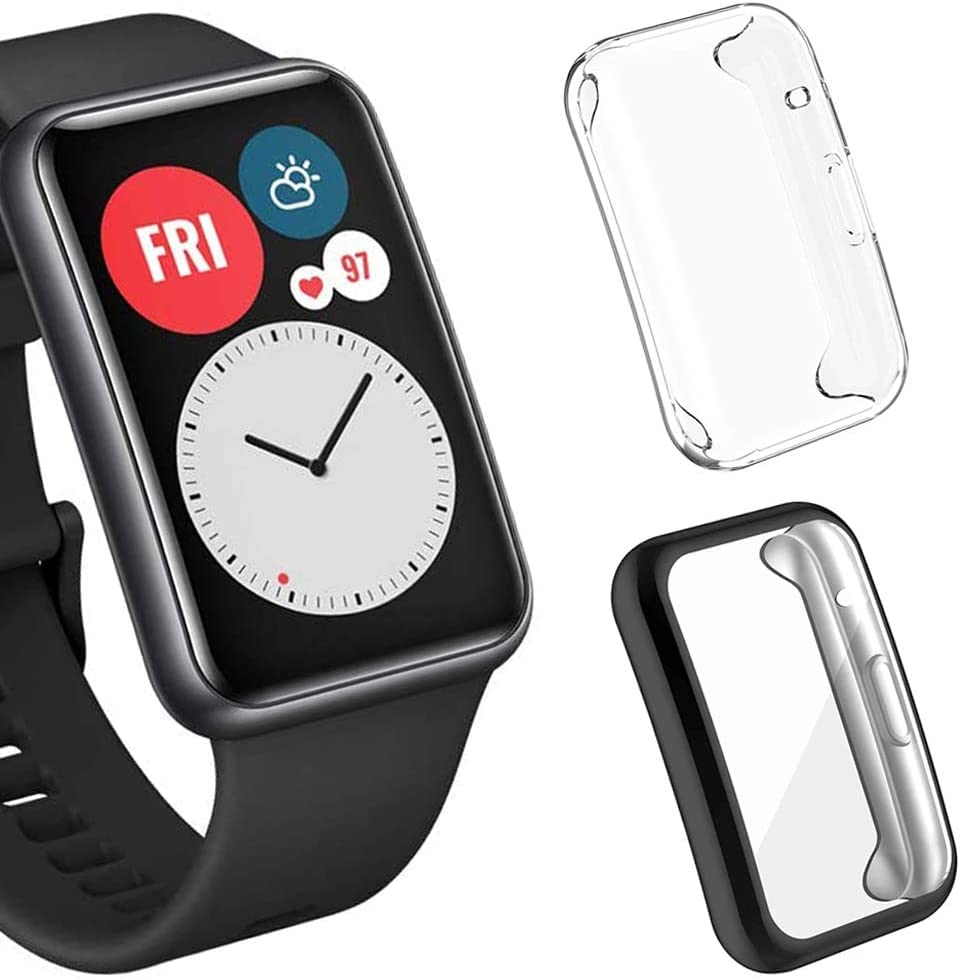 CooBES - جراب واقي للشاشة من كوبيس البولي يوريثين المقاوم للحرارة الناعم جميع النواحي إطار ممتص للصدمات لساعة هواوي ووتش فيت للرجال والنساء شفاف + أسود