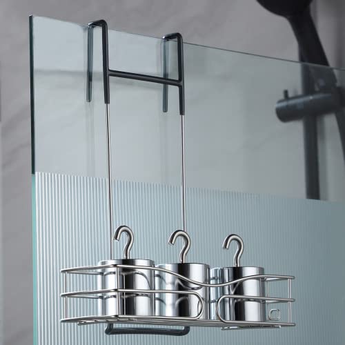 Cooeco - حامل دش معلق، رف دش معلق مقاوم للصدأ فوق الباب، رف دش من الفولاذ المقاوم للصدأ، رف دش معلق للحمام ومنظم زجاجات الاستحمام من كويكو