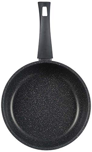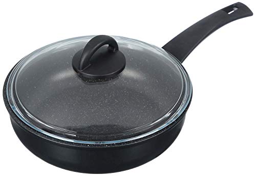 ILLA - حلة طهي عميقة كوك اون روك انديكشن مقاس 24 مع غطاء بايركس، جرانيت، اسود