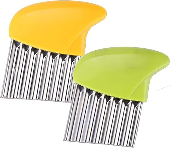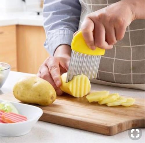 - ✅ (تصميم مبتكر وعصري) تقطيع سهل وسريع للبطاطس والخضروات والفواكهة بشكل موجي جذاب.