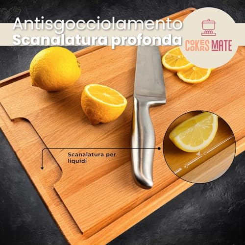 COOKERS MATE - لوح تقطيع خشبي كبير احترافي صحي ومتين بتجويف للمطبخ قابل للاستخدام على الوجهين من كوكرز مايت، مقاس كبير جدا 40×28 سم