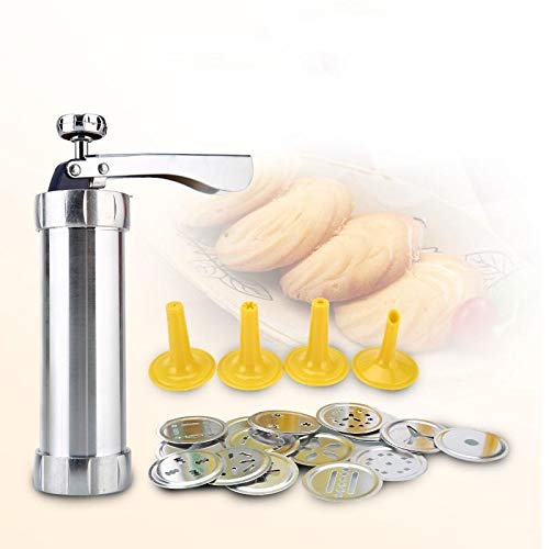Cestbella - الة ضغط وتزيين البسكويت، مجموعة متعددة الوظائف لصنع البسكويت مع قطعة واحدة لضغط البسكويت و4 اقماع للتزيين و20 قالب لعجينة السكر بشكل زهور، هدية للمطبخ للتزيين