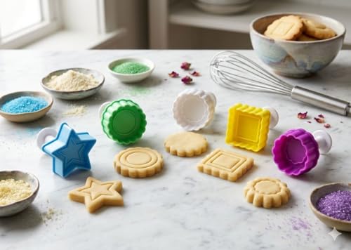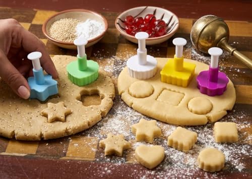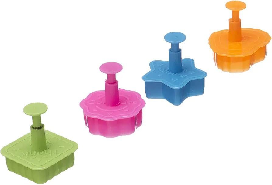 Generic - مجموعة قوالب كوكيز وبيتي باربعة قوالب مع ضغط، 5 قطع، اشكال متنوعة (نجمة، قلب، وردة، مربع، دائرة)، بلاستيك مقوى، متعددة الالوان