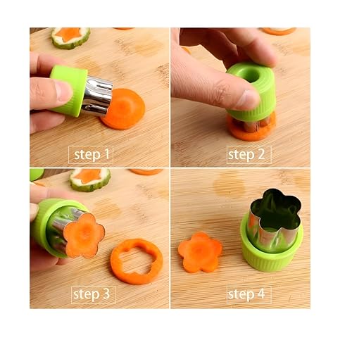 - مثالية لتشجيع الأطفال على المشاركة في تحضير الوجبات، حيث تجعل تزيين الطعام تجربة ممتعة وبسيطة. تعتبر هذه الأدوات مفيدة بشكل خاص في تزيين الكيك والبسكويت، أو ابتكار وجبات خفيفة وأطباق حفلات لافتة للأنظار. كما تُعد هذه المجموعة مناسبة للتزيين بالفواكه والخضروات الملونة، مما يجعل الأكل الصحي ممتعًا وجذابًا. تتميز هذه القوالب بكونها خفيفة الوزن ومتينة وآمنة، مما يجعلها إضافة رائعة لمجموعة أدوات أي مطبخ، حيث تحول المكونات اليومية إلى أطباق فنية مبهجة
