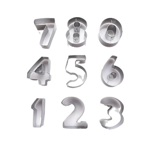 Generic - قطاعة بسكويت على شكل أرقام من 0 إلى 8 مصنوعة من الفولاذ المقاوم للصدأ لتزيين الكعك والخبز وتشكيل الفوندان، 9 قطع