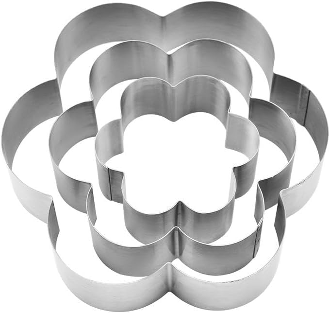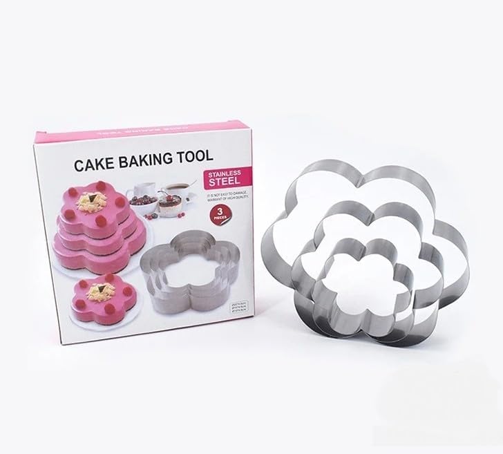 Generic - طقم قوالب تقطيع بسكويت الكوكيز من الفولاذ المقاوم للصدأ على شكل زهرة من 3 قطع، قالب كيك بمقاسات 20/15/10 سم، أدوات معجنات للخبز والحلويات وأعياد الميلاد والذكرى سنوية (فضي، زهرة 1)