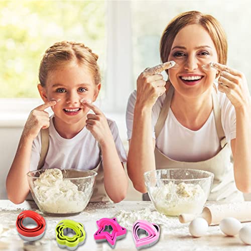 BSNRDX - طقم قطاعات كوكيز ستانلس ستيل باشكال مختلفة، قوالب بسكويت باشكال دائرية وزهرة ونجوم وقلوب مزودة بمقبض واقي من بلاستيك بي في سي، قوالب كوكيز لتحضير وتزيين الكيك، 12 قطعة