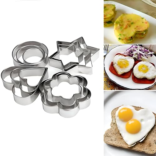 Generic - قطاعات بسكويت - 12 قالب من الستانلس ستيل في 3 مقاسات مختلفة لتشكيل الخبز المحمص والبسكويت والبيض بتصميمات مبتكرة تشجع الاطفال على الاستمتاع بالطعام والسماح بمشاريع طينية مرحة