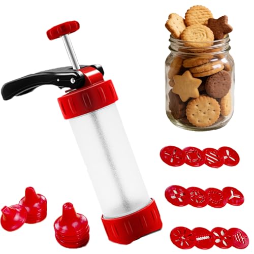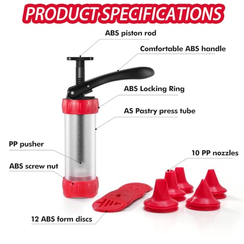 BLSOJEET - مجموعة ضغط البسكويت، ماكينة صنع البسكويت ذاتية الصنع، تحتوي على 12 قرص استنسل مزخرف و10 رؤوس للتزيين، اداة خبز البسكويت المنزلية، مكبس بسكويت للخبز والديكور بنفسك